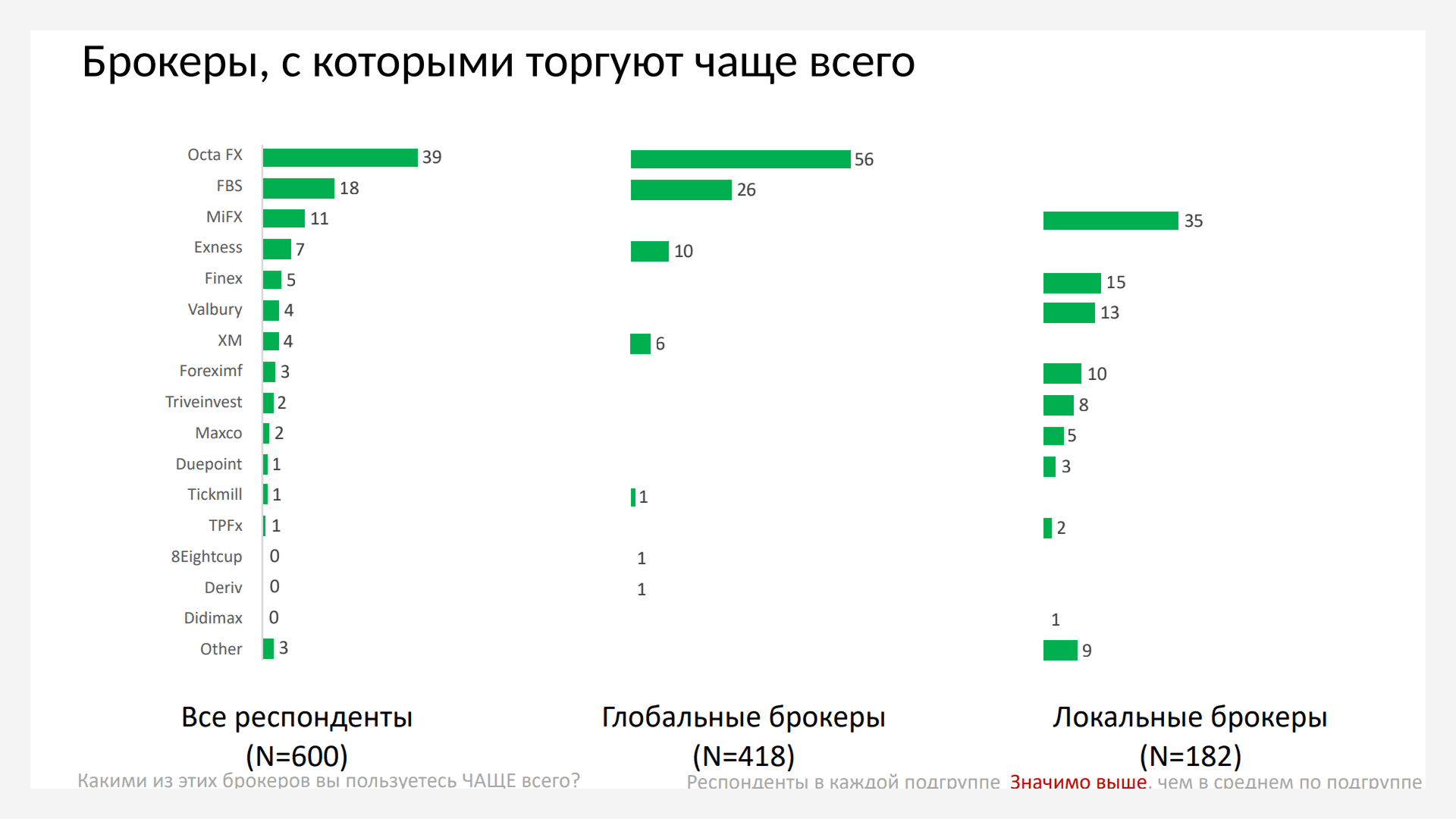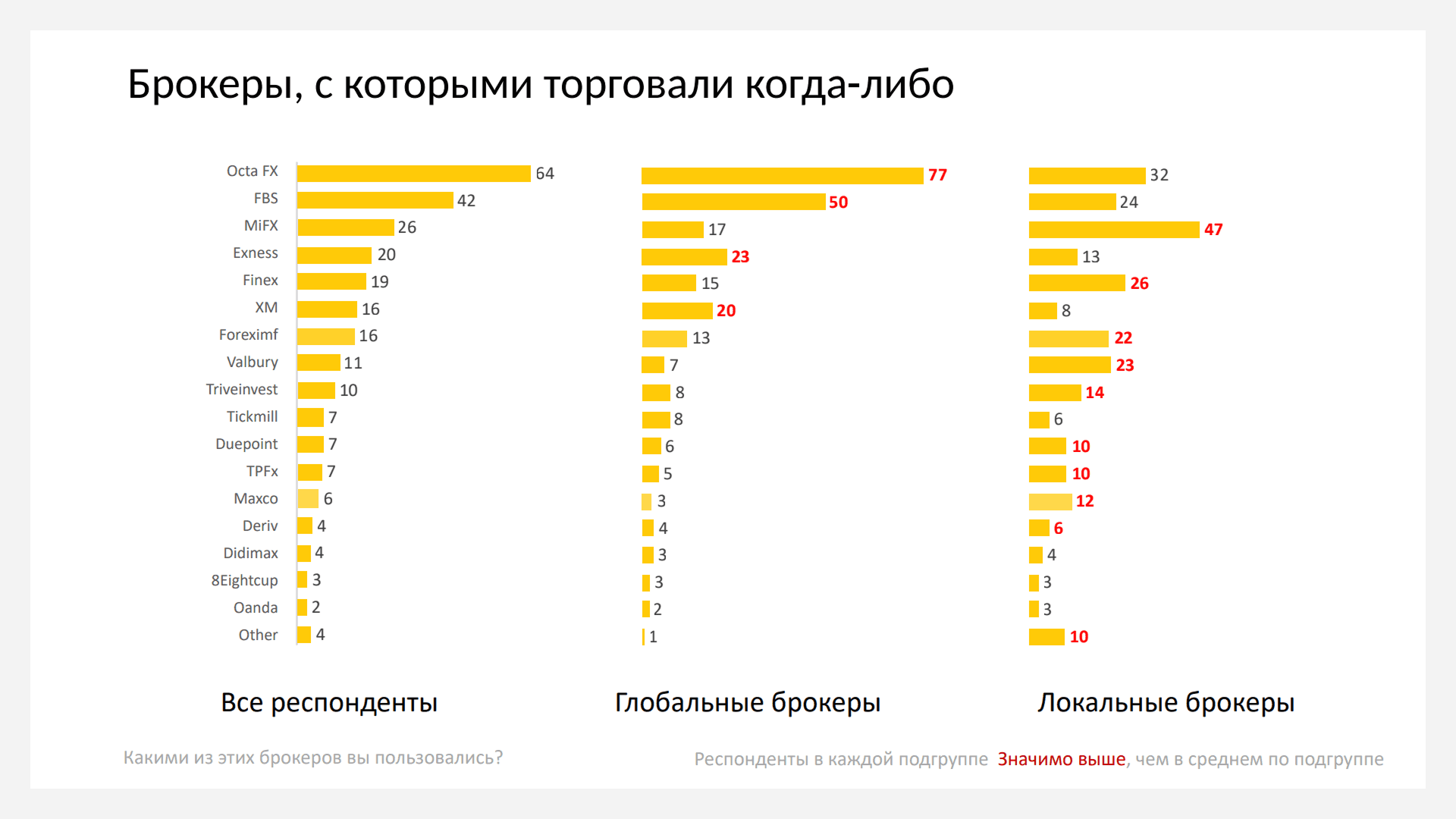 Octa, MiFX, Exness, XM, eTorro, FxPro, ByBit, Binance и другие